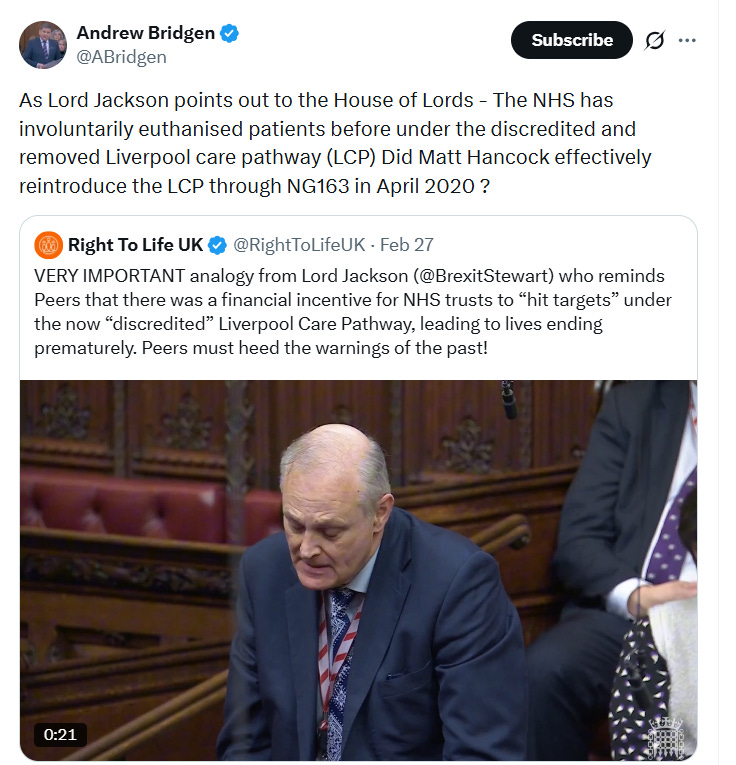 Of course, NG163 wasn’t the UK’s first rodeo in terms of a scandal involving euthanising patients using sedative drugs, as Andrew Bridgen pointed out yestoday on X: