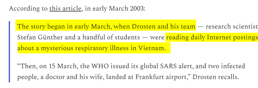 Further to a comment below and my response, I thought it worthwhile pointing out - to those unaware - that Drosten was central to the development of the PCR test for SARS, which was as bizarre a story as the one around SARS-CoV-2: