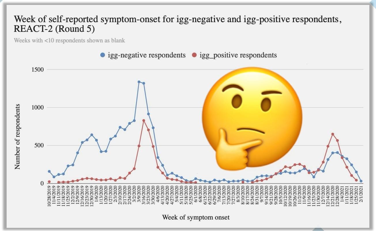 Generally, commentators have made much of the fact that the recalled symptom dates in antibody-positive subjects coincided with the timing of covid “waves”.